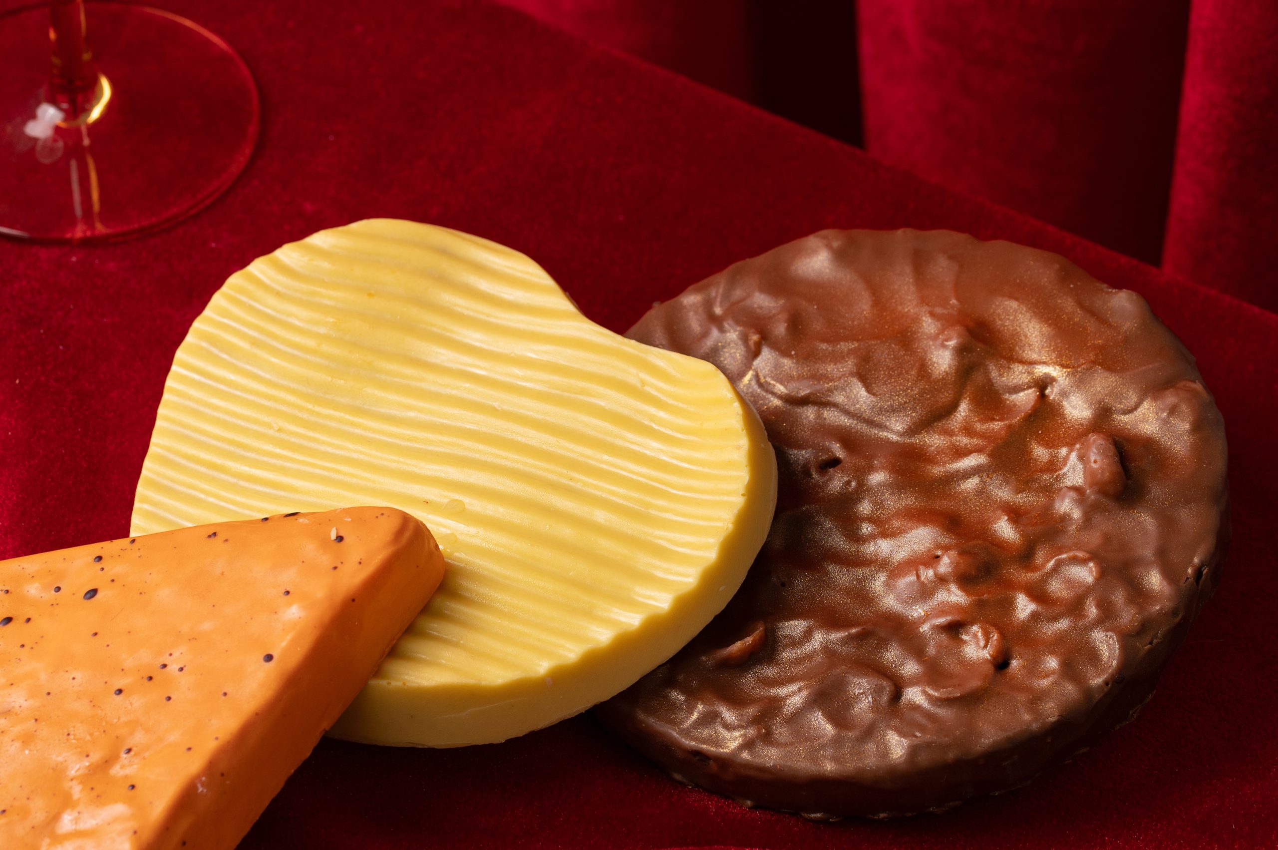 Manteca de Cacao, peta crispies (azúcar, glucosa, gas propelente: dióxido de carbono (E290), LACTOSA, agua), manteca de cacao, frambuesa, agentes de recubrimiento: goma laca (E904), aceite vegetal de palma, colorantes: rojo Allura AC (E129), azorrubina (E122) *, indigotina (E132), emulsificante: E476. Caramelo crispy (azúcar, mantequilla, aceite vegetal (palma) LECHE en polvo, sal, emulgentes: lecitina de SOJA)